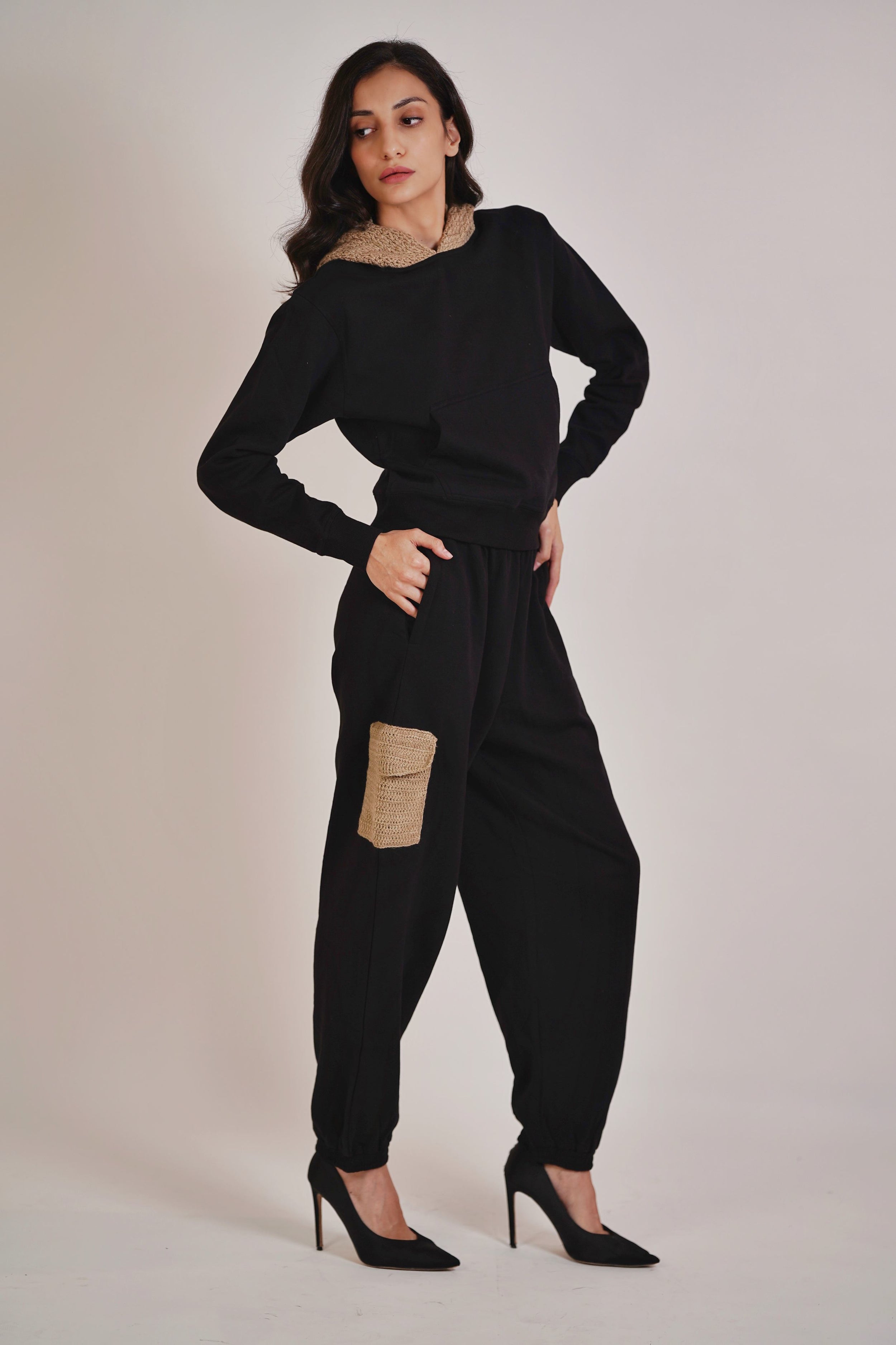 | Material: 100% Cotton with Brilon Wool Hood Colour: Base - Off- White, Patch - Dark Brown The hoodie features ribbed detailing at the hem and cuffs, adding a touch of sophistication to its cozy charm. The joggers are thoughtfully designed with side pockets for added functionality, and cinched-in hems that strike the perfect balance between relaxed and refined. |