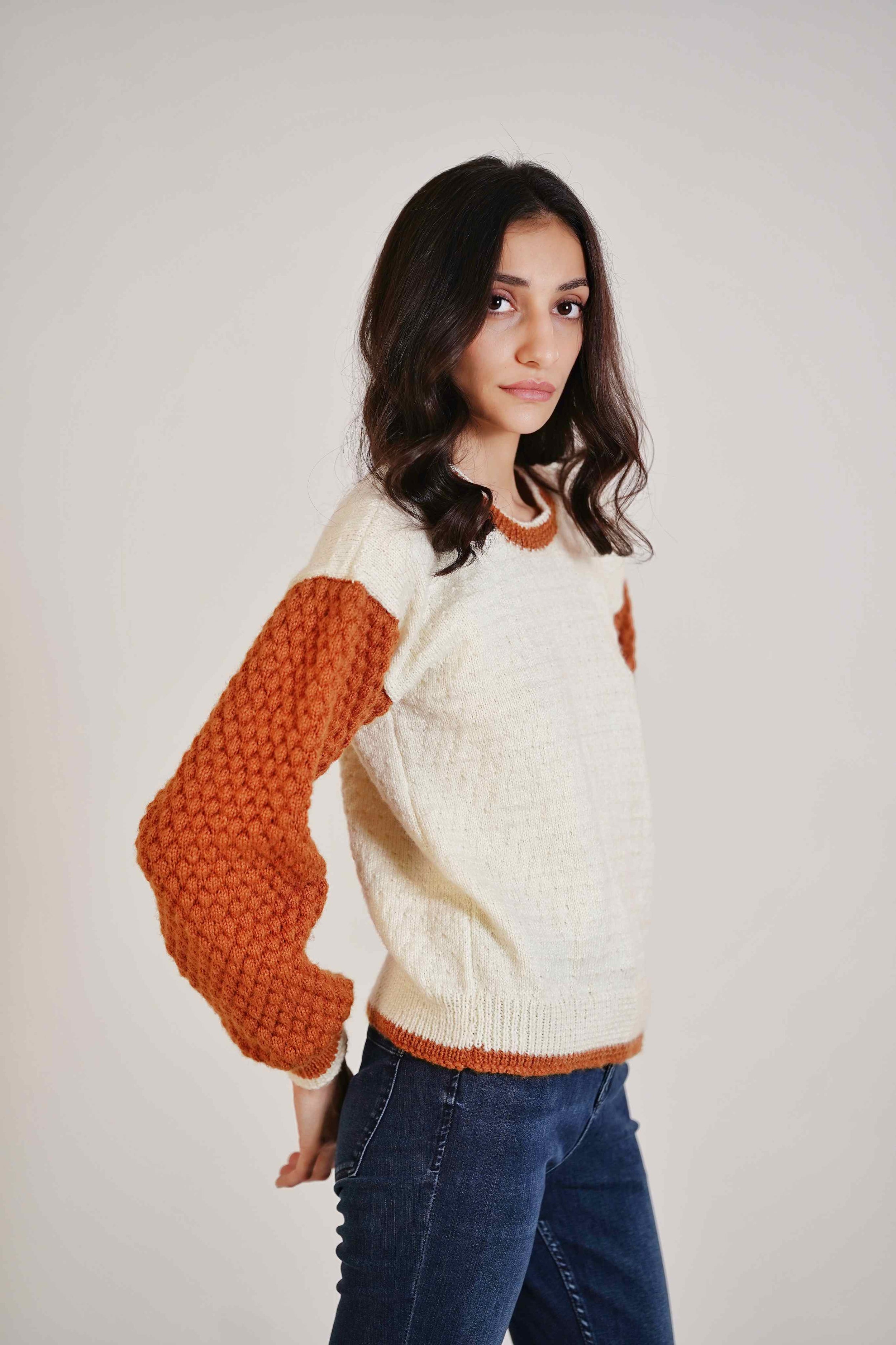 Introducing our Subtle Color Co-ordinated Hand Knitted Sweater, a true masterpiece of craftsmanship and style. This exquisite piece is meticulously hand-knitted with a delicate color scheme that exudes elegance and sophistication. The subtle coordination of colors creates a harmonious visual appeal, making it a versatile addition to your winter wardrobe. Designed with utmost care, the sweater features intricate ribbing at the sleeves and border hem, ensuring a snug and comfortable fit. The ribbed details not only add a touch of texture but also enhance the overall aesthetic. This sweater is tailored to keep you warm and stylish throughout the winter season.